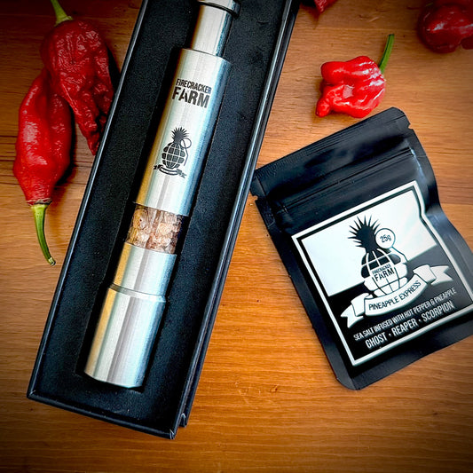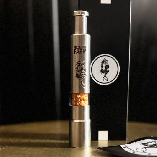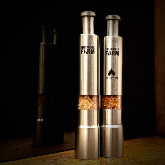 It's Hotter! If you like it hot, you'll want to try the Hotter Stuff - It's our legendary Three Kings Hot Salt, blended and infused at 6x the concentration. It's packs a notably higher heat level for when you want to dial up the heat without excess salt. Available as a Double Barrel set with Hotter Stuff, Three Kings and refills, as stand alone push grinders and in refill pouches. Favor and spice enthusiasts asked for it and now it's our best selling combo. You'll love it too!