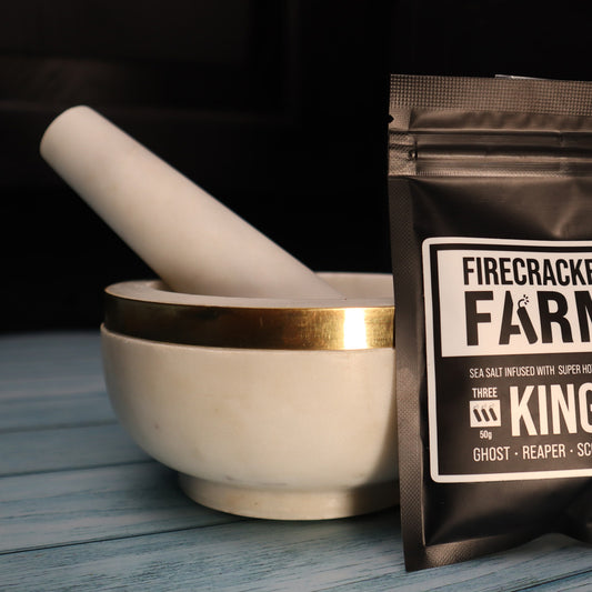 Our Three Kings Hot Salt Pusher + Refill pouch has everything you need to elevate your food, your cocktails and your enjoyment of life. It gives you exquisite, mouth watering flavor and savory heat in controlled bursts whenever and wherever you want one. The moment you taste it, you'll know it's made with love. Absolutely delicious. This little device filled with spice makes friends out of strangers and sunshine from rain. Imagine what it will do for your food! EVERYTHING IS BETTER 🔥 WITH HOT SALT