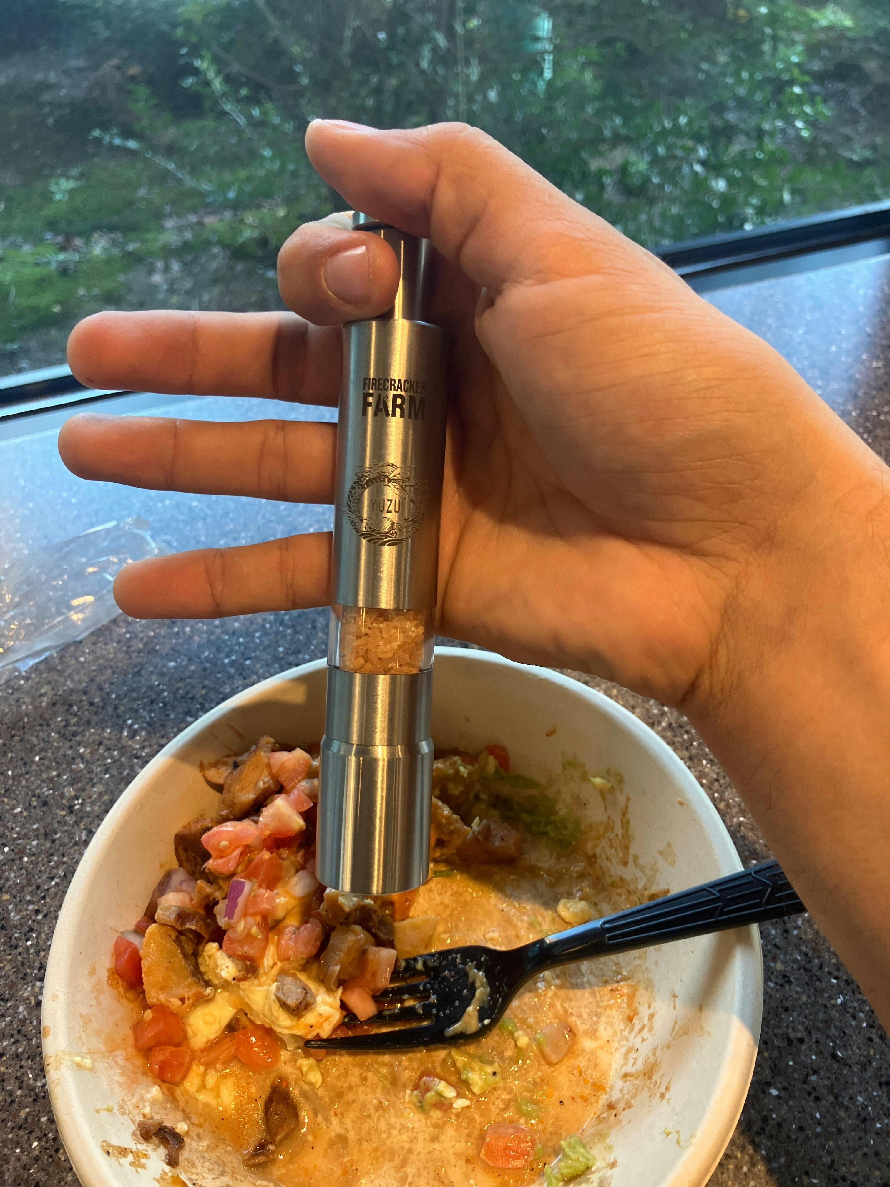 It was hard at first to justify spending $100 on seasoning. But I don't have any regrets here. The push grinder is convenient to slip in your pocket and take to lunch with you. And while my friends make fun of me for carrying my seasoning around with me, they nevertheless will always ask me for some on their meals because they cannot deny how much it enhances their food.