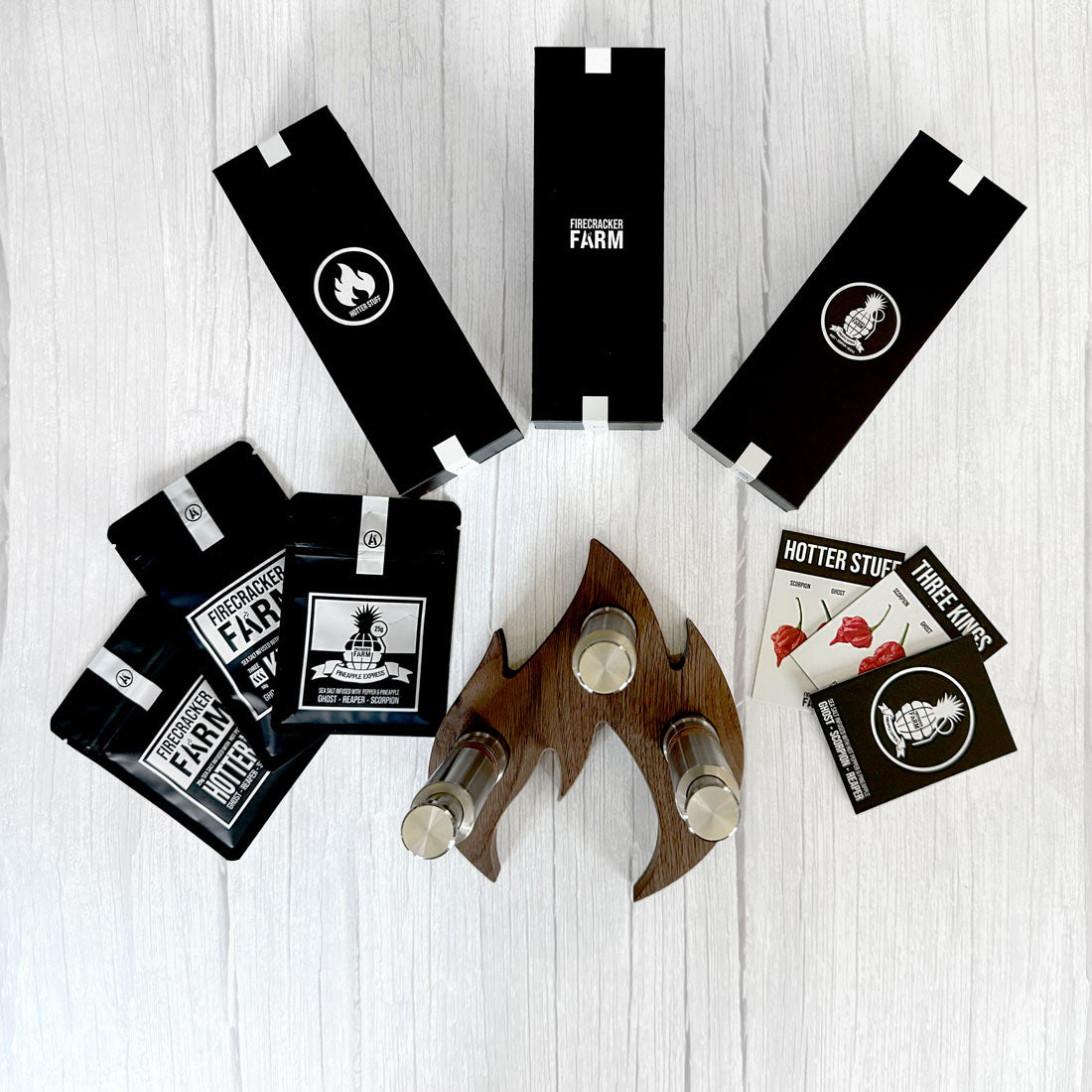 The cornerstone collection of our most popular Hot Salts, elegantly packaged with our custom Walnut Flame Holder. These three Hot Salts form the core and most popular products in our lineup.
